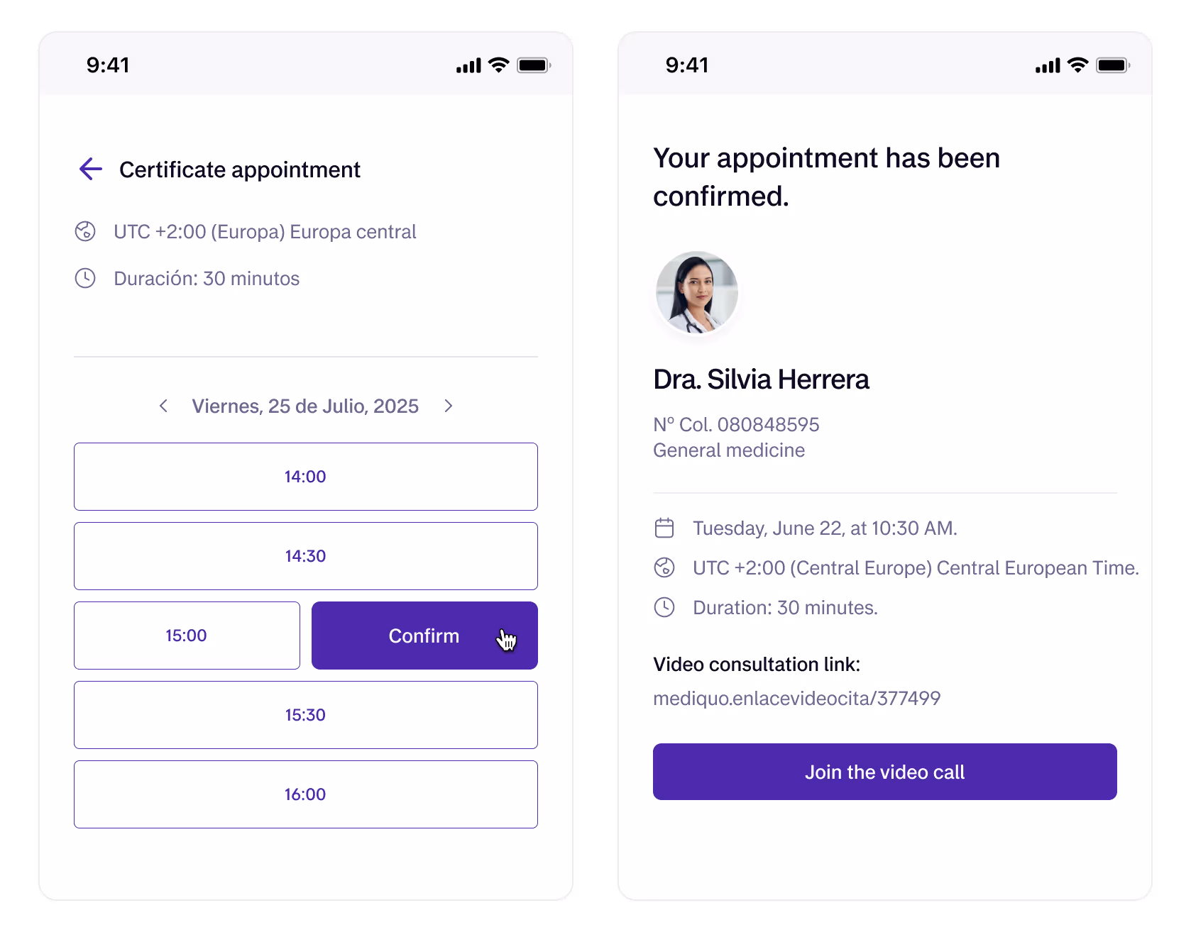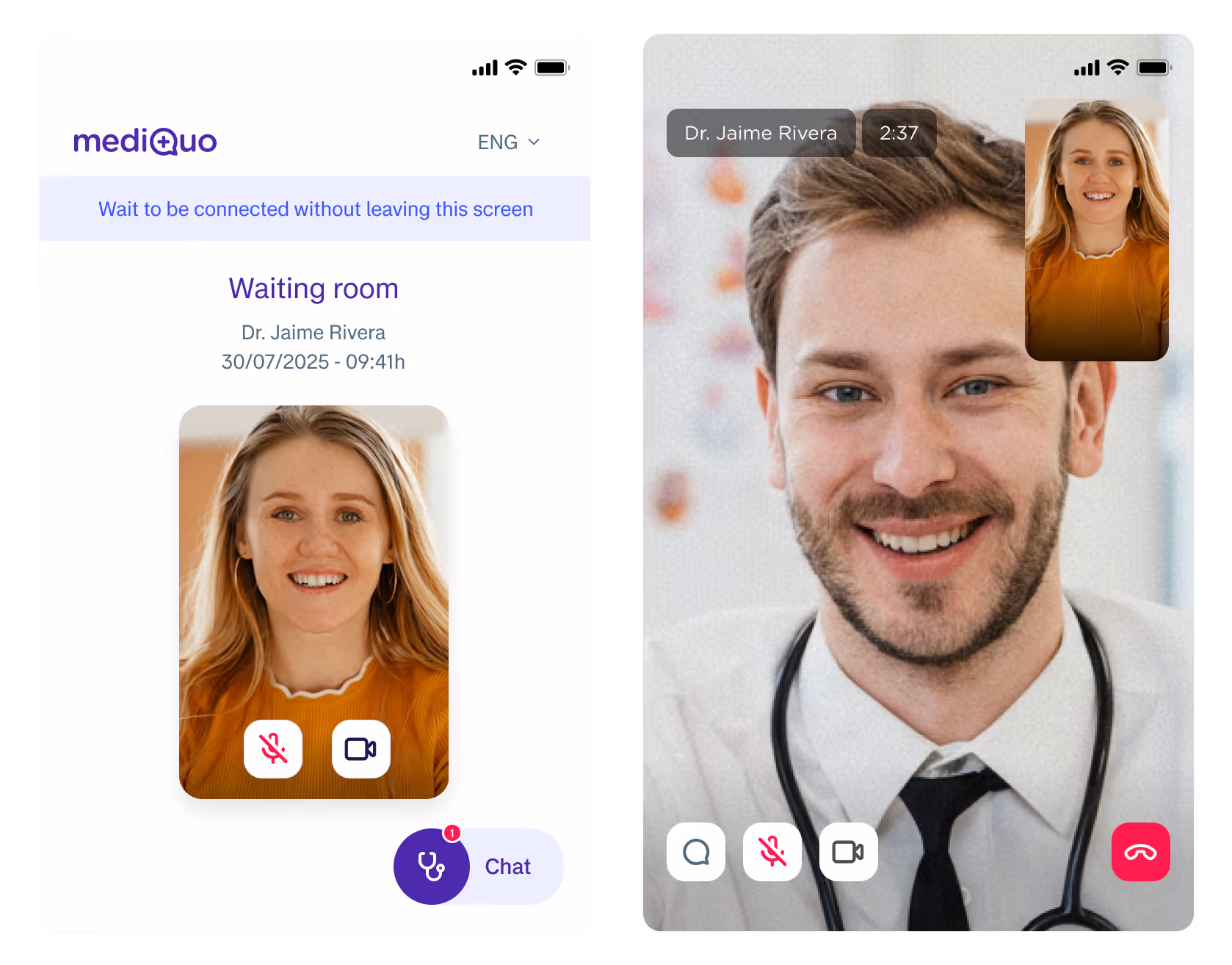 If you can't attend the video call, contact our support team at support@mediquo.com to pick a new time that works for you.